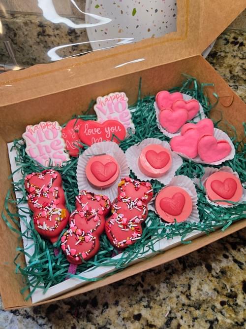 A charming treat box filled with assorted heart-shaped confections — the perfect petite gift for Mother’s Day. Show your lovely Mother's or other maternal figures how much you love them with a box of heart shaped treats.